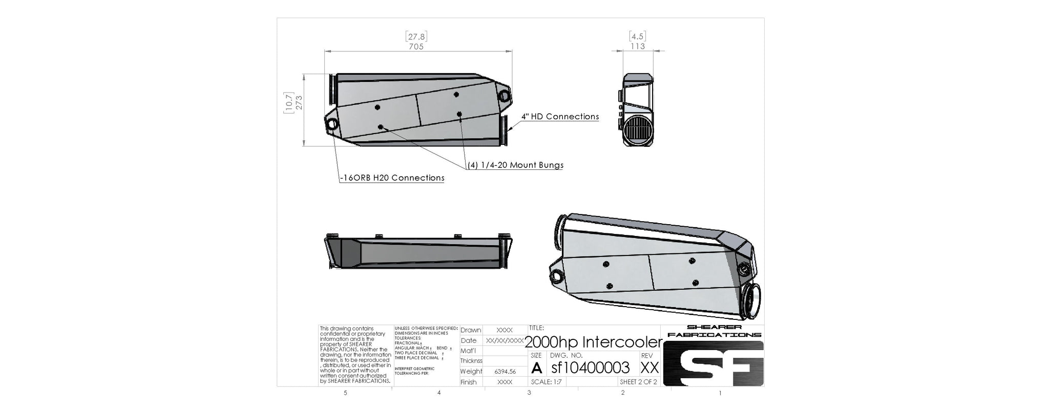 The foundation of this intercooler is two 1000hp Garrett Intercooler cores. Proven time and again to be the absolute best intercooler cores on the market. The USA made aluminum sheet is cut in house on our CNC machines, formed in house by experienced craftsman and professionally welded by some of the best welders in the industry.
