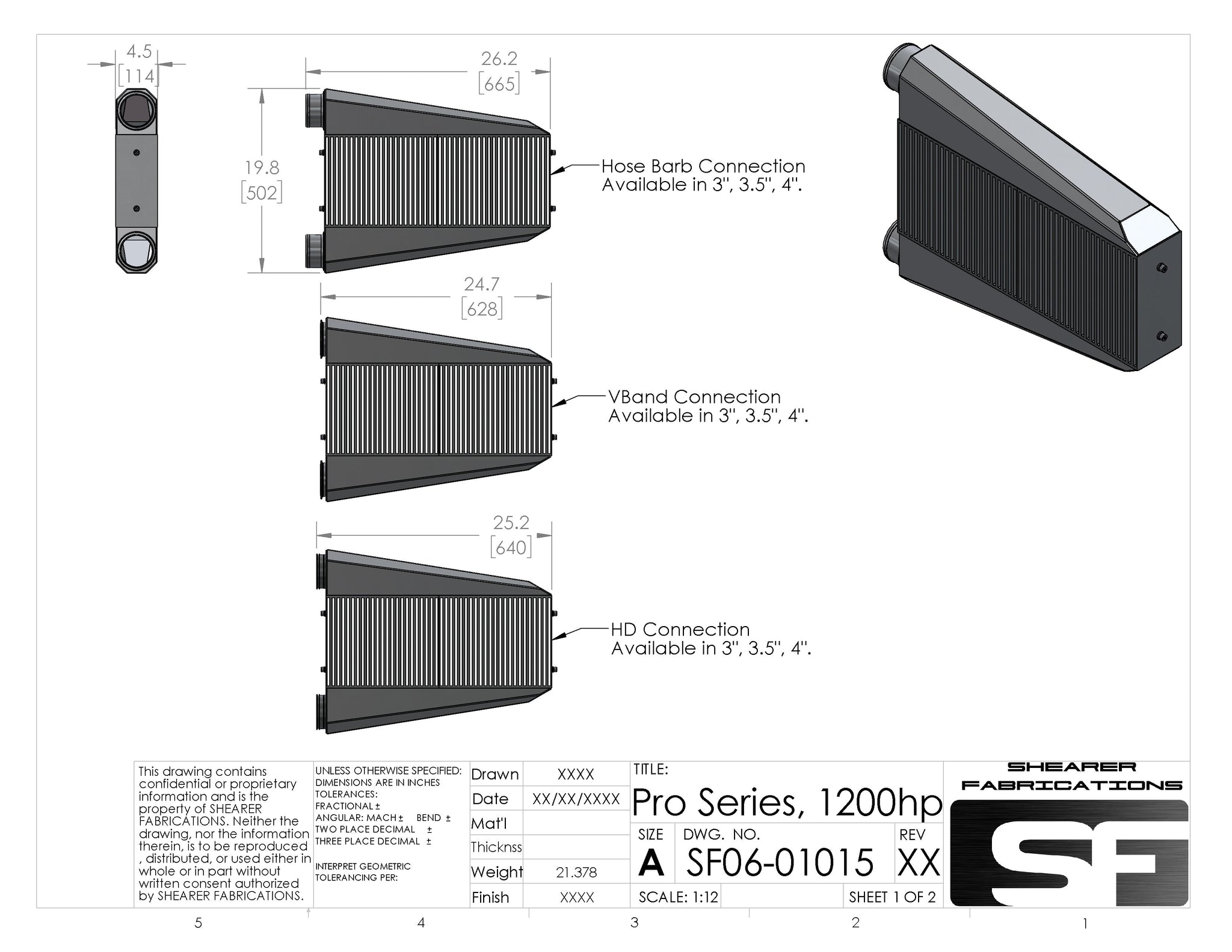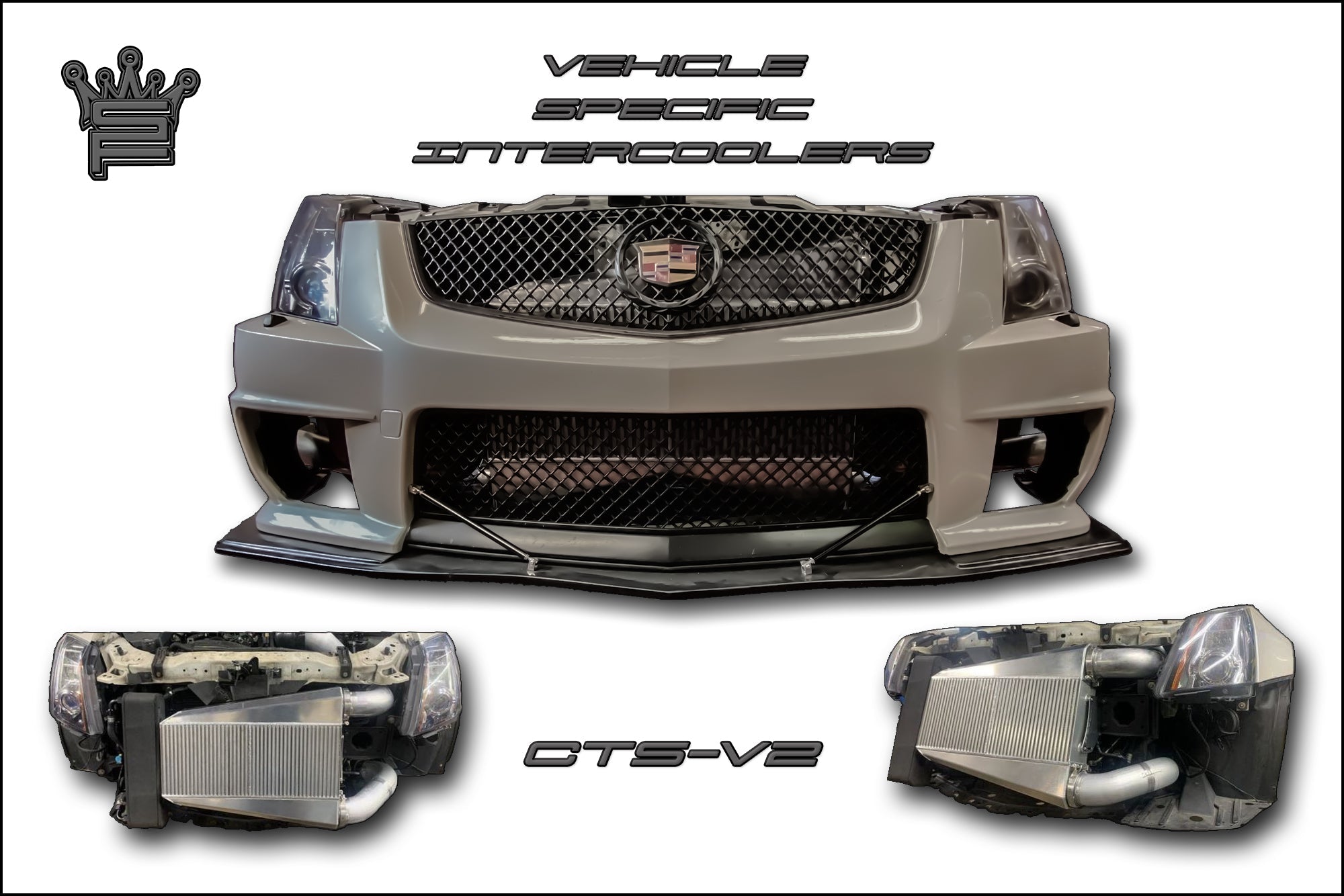 A 1200+hp capable single inlet/outlet Intercooler for your 2009-2014 CTS-V. The foundation of this IC is a best in industry Garrett Intercooler Core, outfitted with 3.5" VBand inlet tank, and a 3.5" VBand outlet tank. The supplied mounting brackets hang the intercooler to the factory bumper horns and clears ALL of the factory AC equipment. The brackets also allow for 20degrees of mounting position adjustment to clear any additional coolers you may have mounted up front. All mounting hardware is supplied.