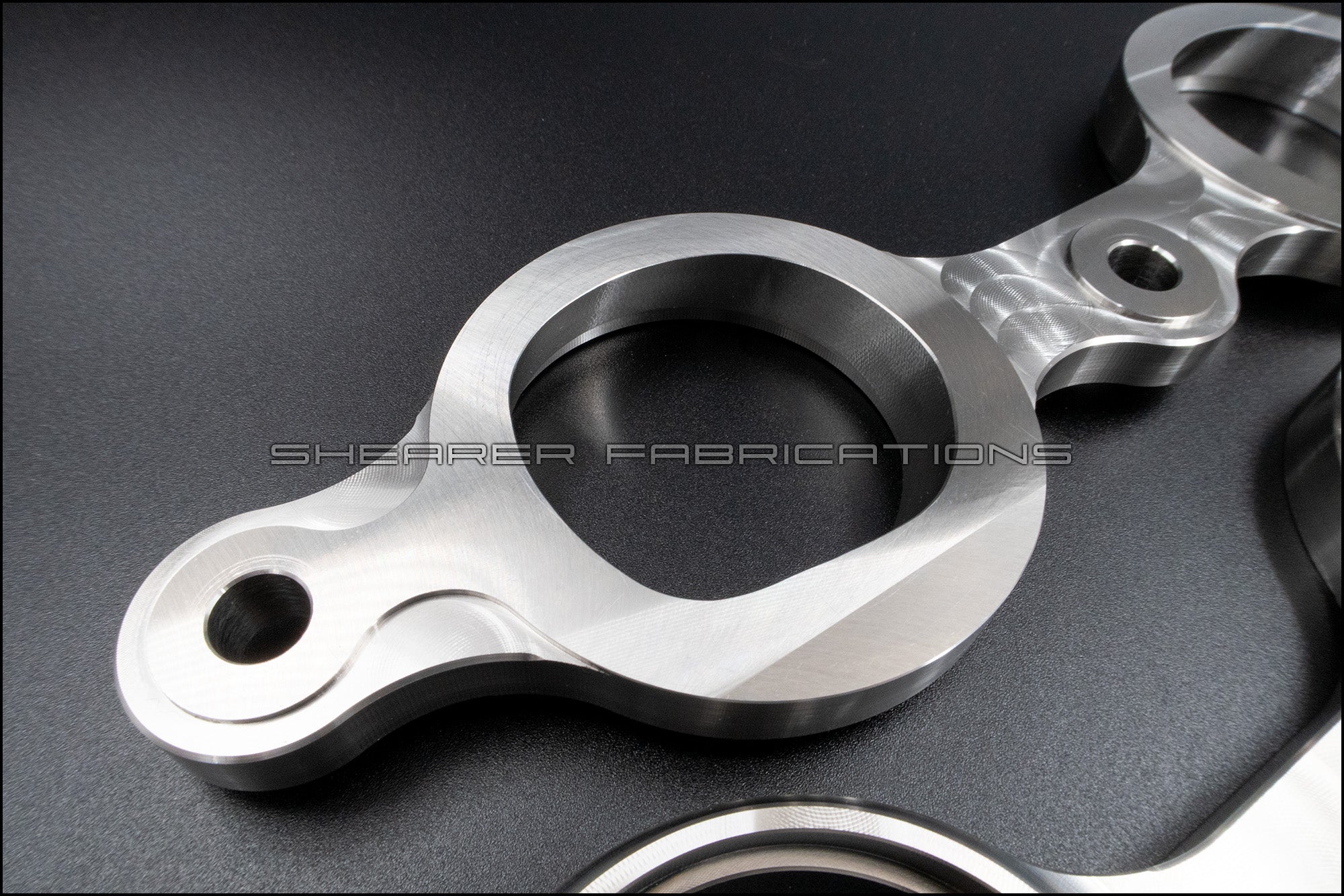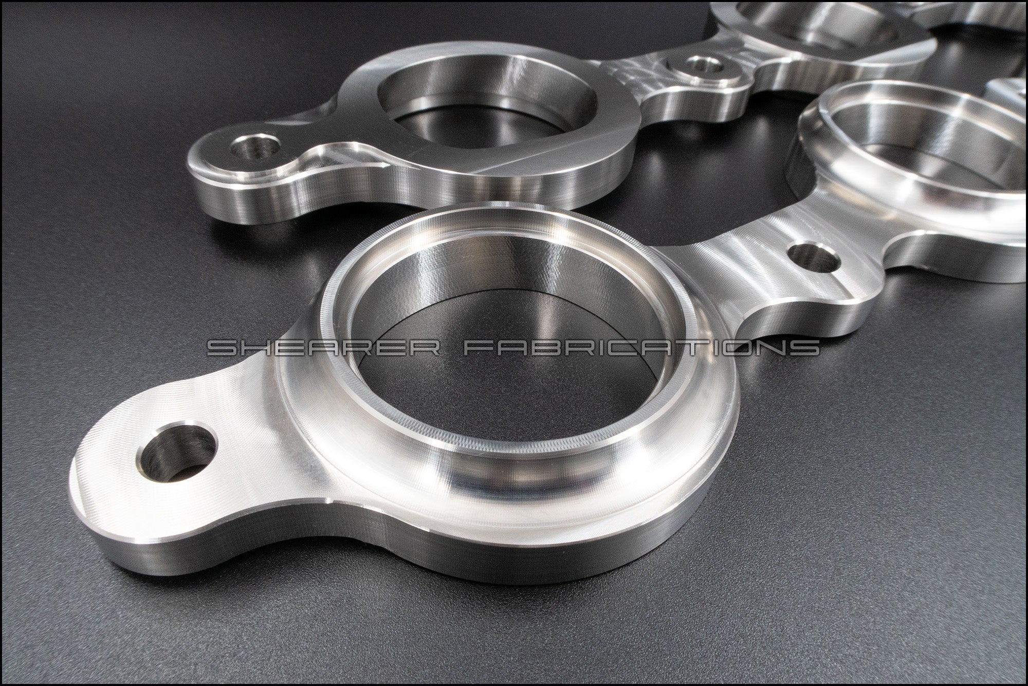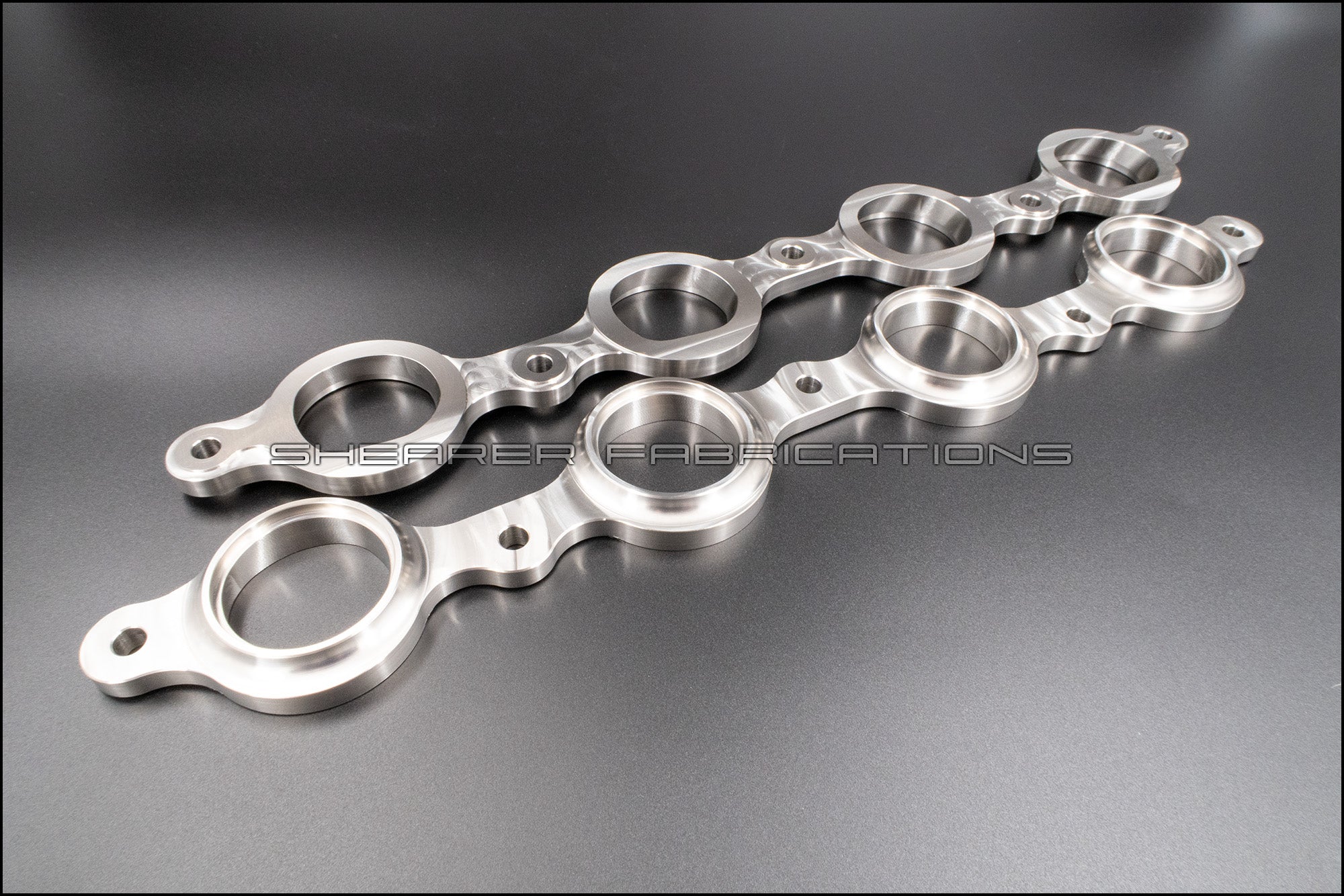 Shearer Fab exhaust flanges are the finest flanges for your LTx engine. Completely CNC milled from a 5/8" bar of stainless steel to fit LT1, LT4 and LT5 exhaust ports. The 3D profiled ports are designed to work with factory ports or MAST Motorsports CNC'd cylinder heads. Each port features a locating recess for the exhaust tubing to make the mock up process easier. This also creates a stronger weld joint and makes the transition from port to tube finishing process very easy!